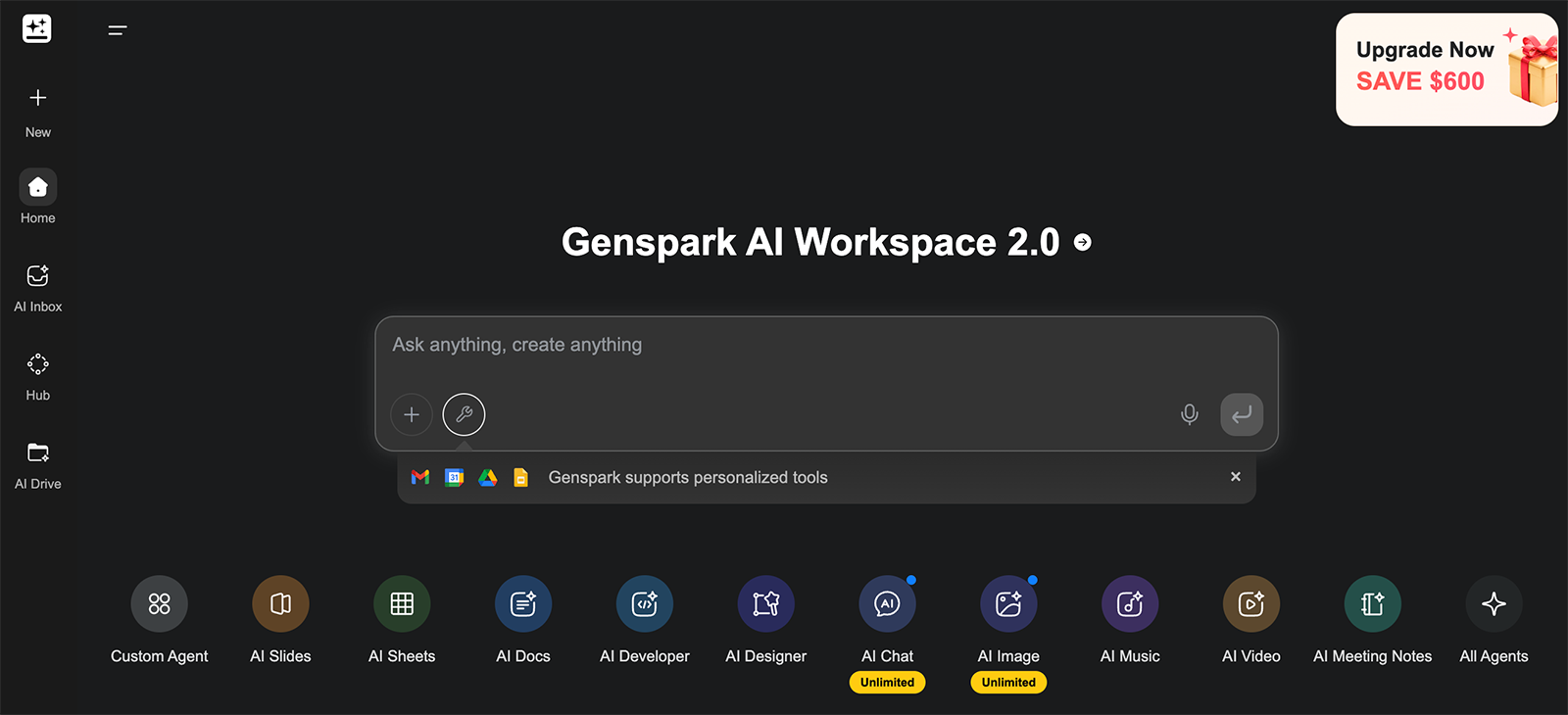 Genspark is an AI workspace that generates slides, docs, sheets, images, and much more. It also has an AI assistant and custom AI agents to help with completing almost any work or personal task.