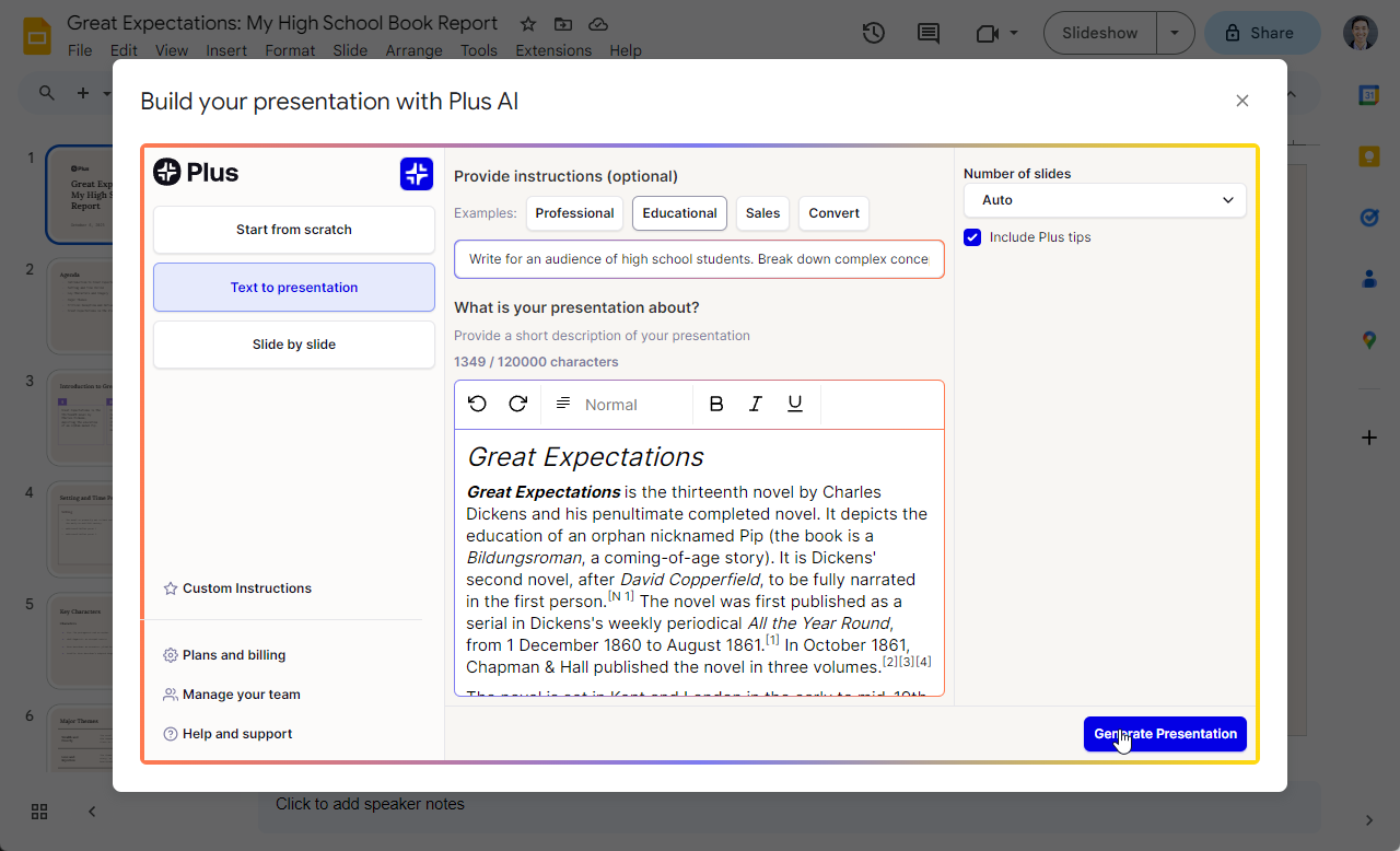 - Turn reports into presentations - If you have long documents that take a long time to read, converting them into slides is an easy way to share and present them
