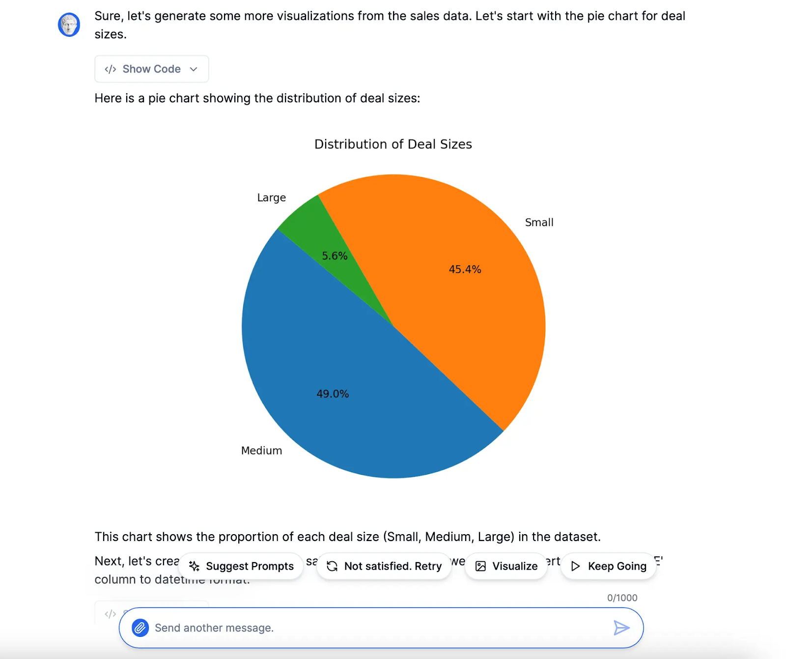 All you have to do is upload your data and ask Julius AI to visualize it using prompts such as “Show me a pie chart of employees by department.”