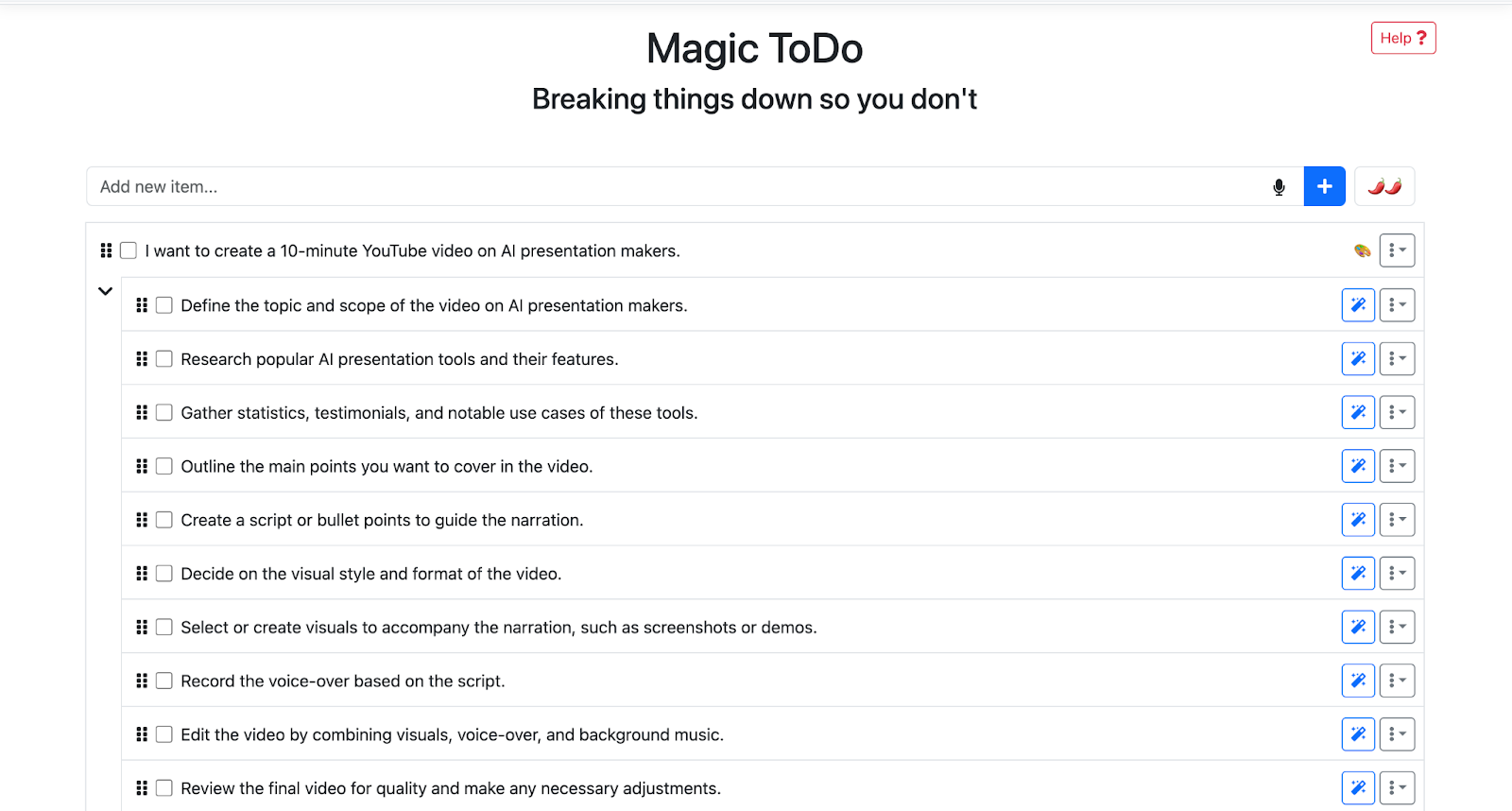 It’s not an advanced AI productivity tool with lots of fancy marketing behind it, but I’ve found it useful for breaking down a big project into various subtasks and giving myself a reality check about how long something is going to take.