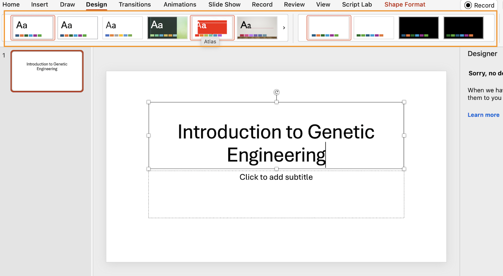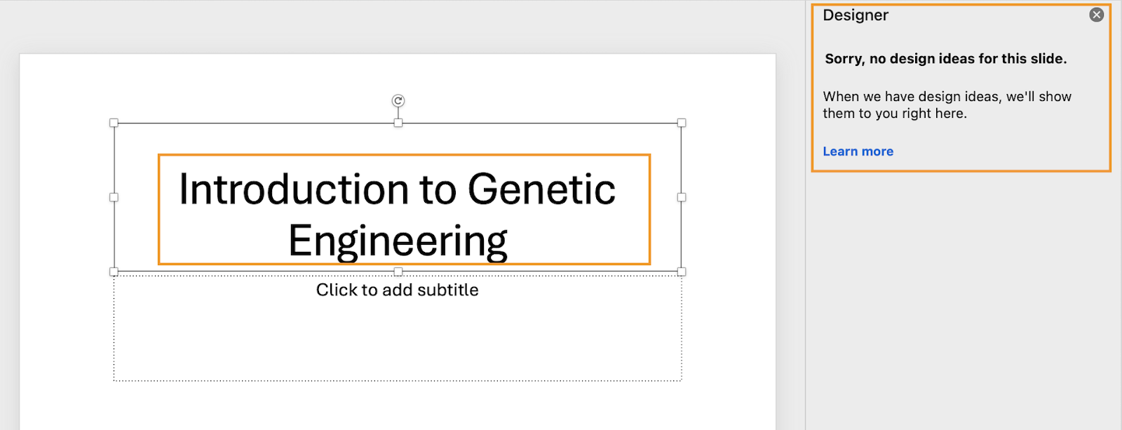 On the other hand, more sophisticated topics can cause PowerPoint’s AI design assistant to draw a blank: