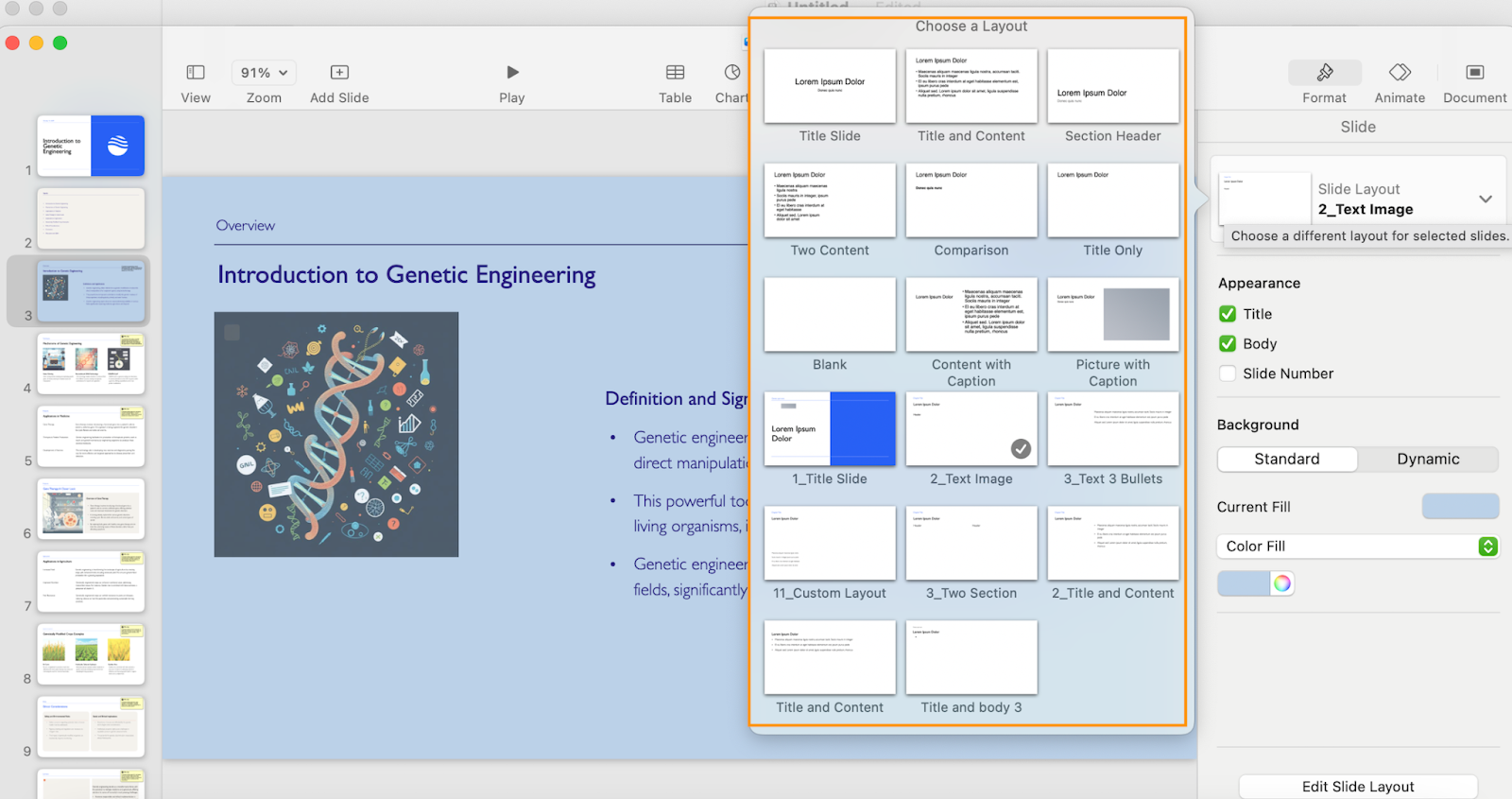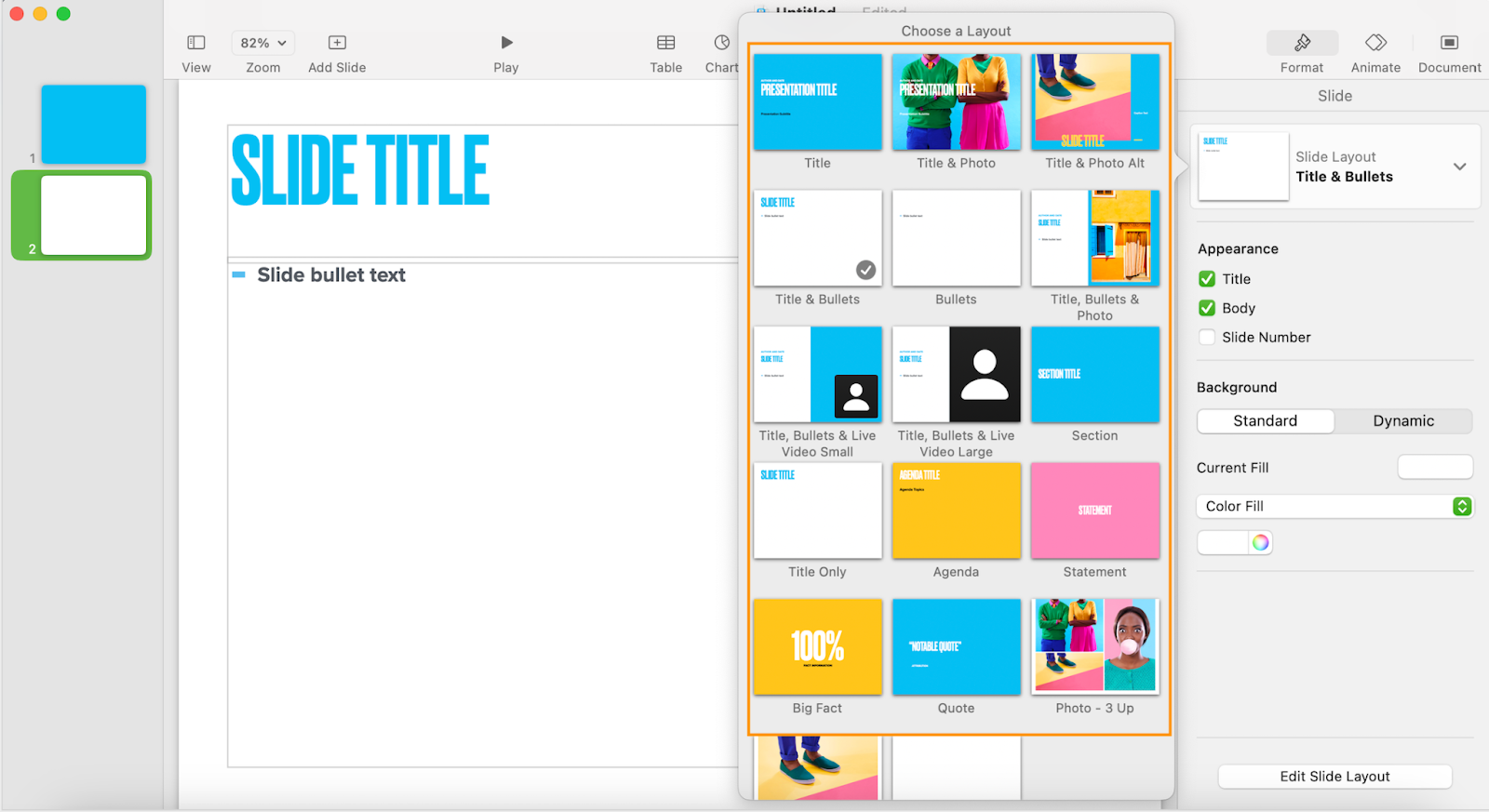 Thankfully, the layout-changing feature can help you jazz the slides up:
