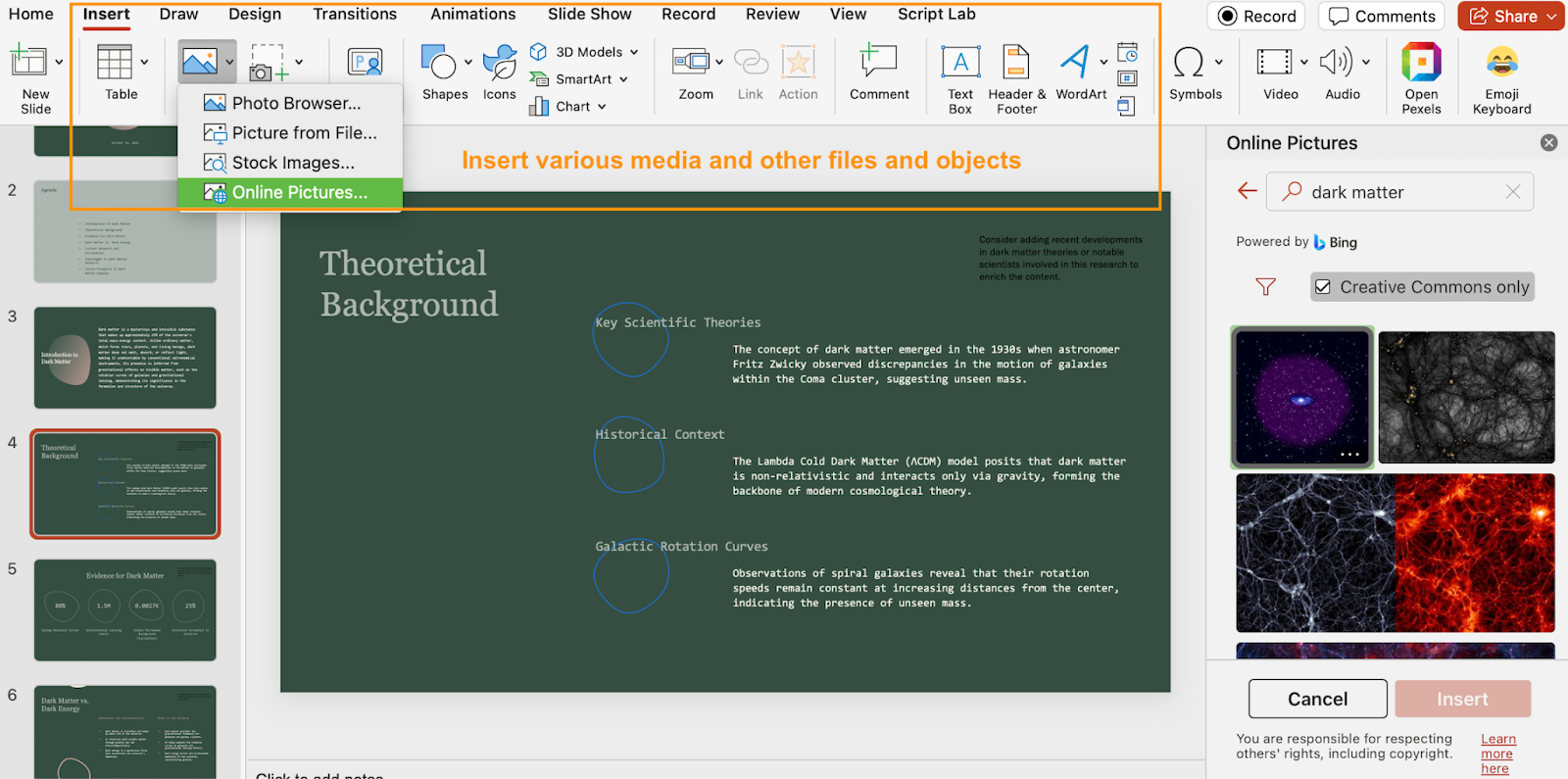 When building slide decks in PowerPoint, you get access to a massive assortment of features that facilitate slide design. For example, the Insert tab offers an impressive range of ways to add images, videos, audio, shapes, and text to a slide: