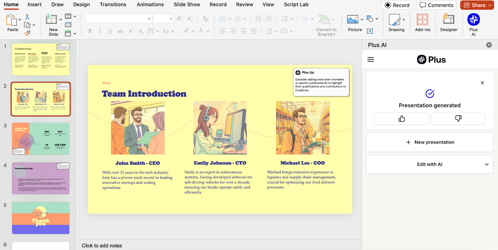 Fortunately, PowerPoint works with Plus AI, an add-in that can auto-generate presentations using artificial intelligence: