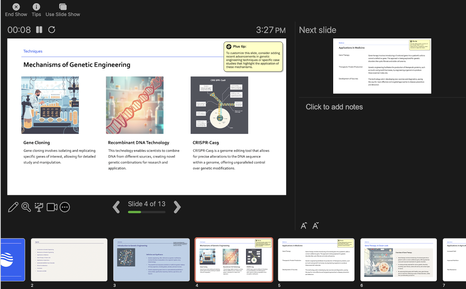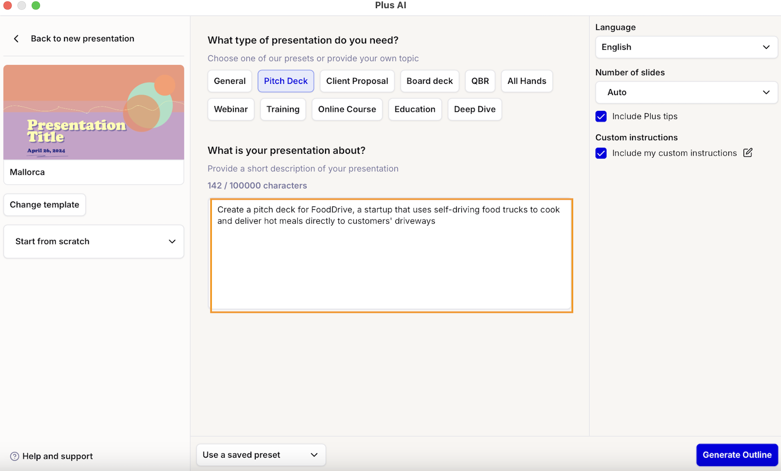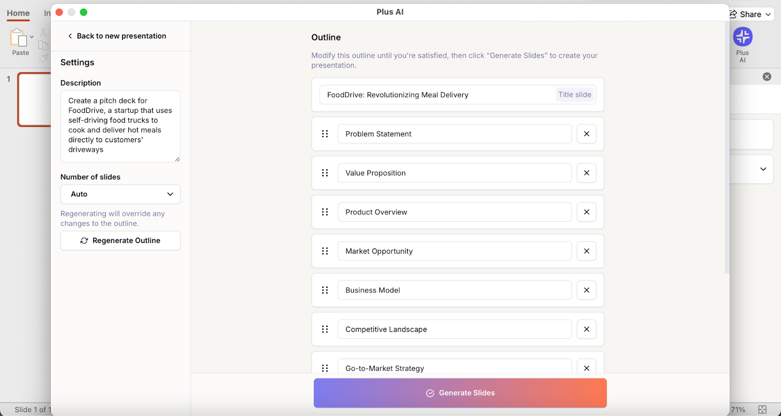 Plus AI will generate a presentation outline you can review and edit: