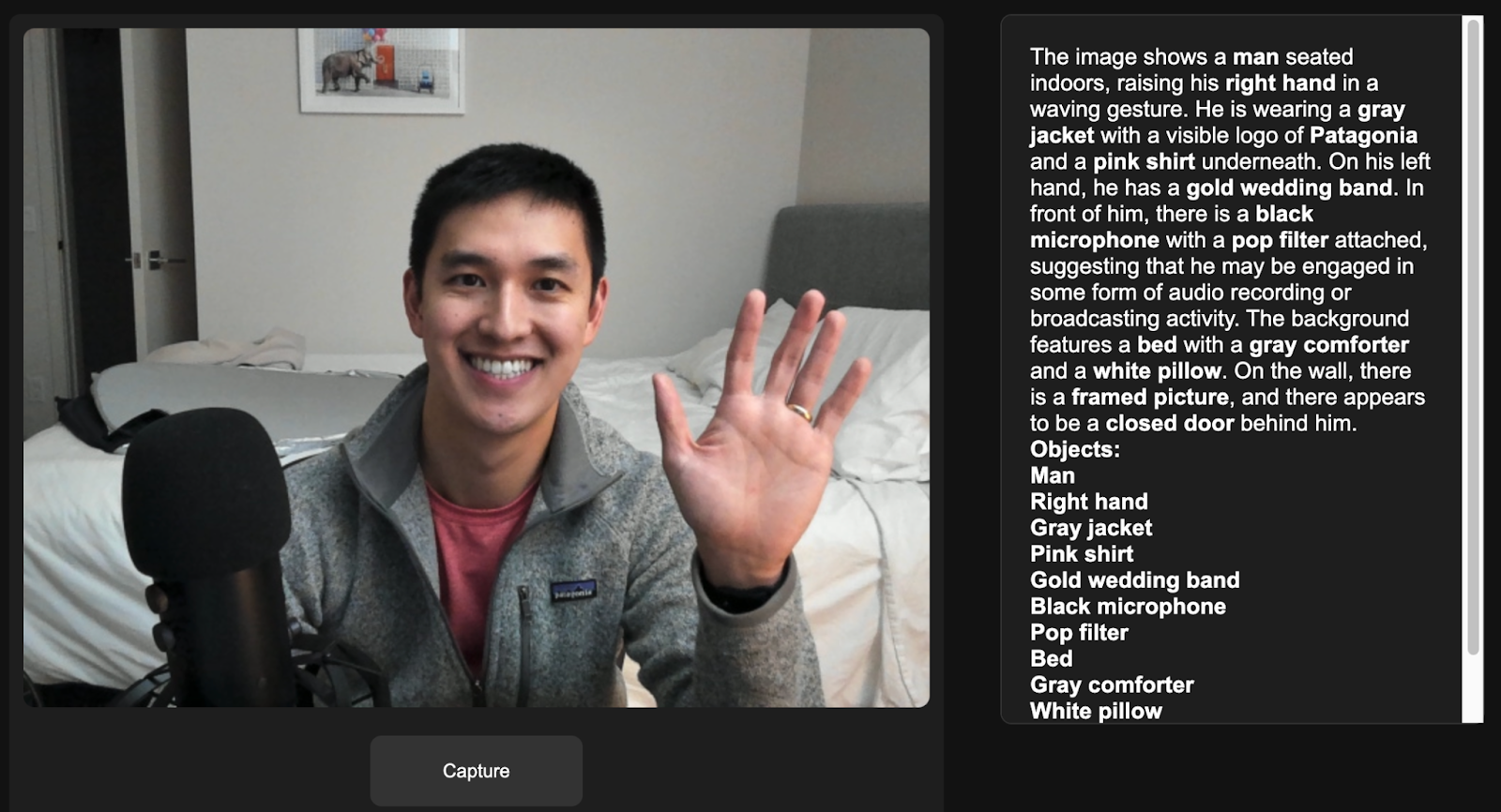 Ideas for where to bring this idea next? Focus on a particular customer segment to build assistive tools for blind users. Build a scavenger hunt game for items around a house. Build Omegle v2 that matches people based on their environments.