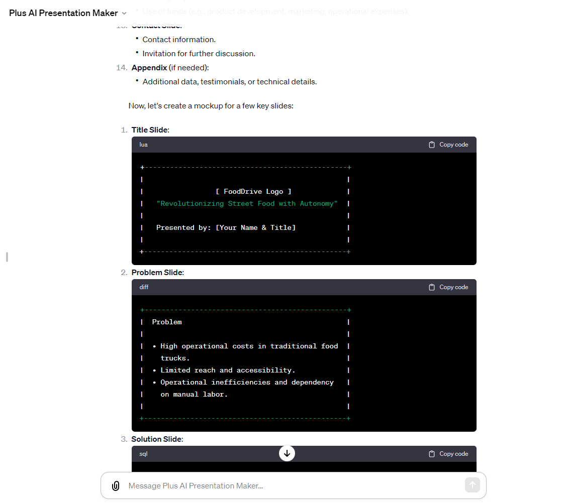 Link to custom GPT: https://chat.openai.com/g/g-M1LP4l1Kf-plus-ai-presentation-maker