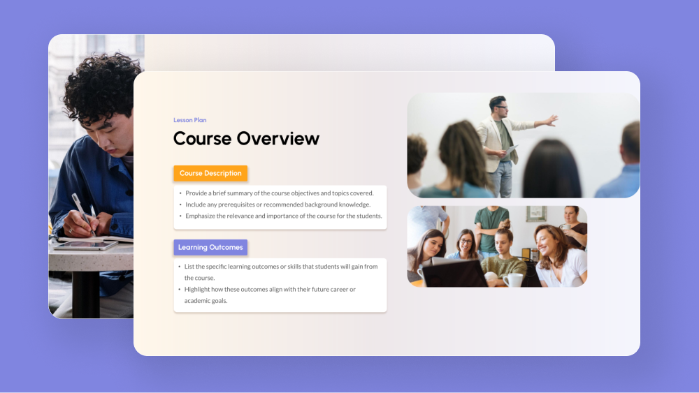 Plus AI can pull from your existing resource slides, pre-approved image and icons, and more