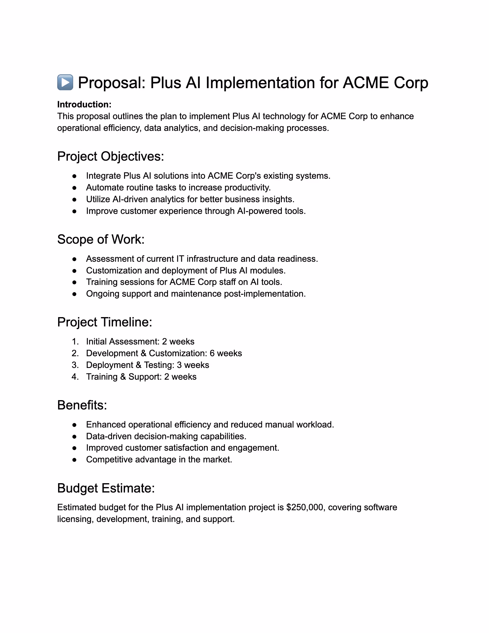 Create onboarding presentations rapidly with Plus AI, getting your sales team ready from day one.